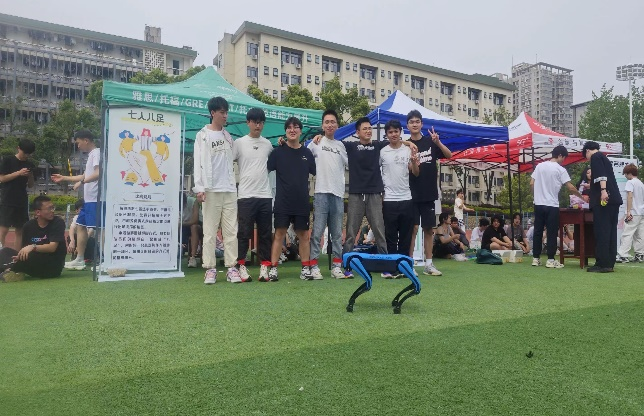 紧接着的“七人八足折返跑”比赛更是将团队合作的力量展现得淋漓尽致。各班级队伍选手紧紧相拥,肩并肩、心连心,与机械狗共同向前冲刺。随着“121……”的整齐口号声响起,他们步伐一致,配合默契,迅速向前推进。现场观众热血沸腾,为选手们的精彩表现欢呼喝彩。值得一提的是学院的“机器狗同学”也参与了这次折返跑比赛,还获得了第三名的好成绩呢!